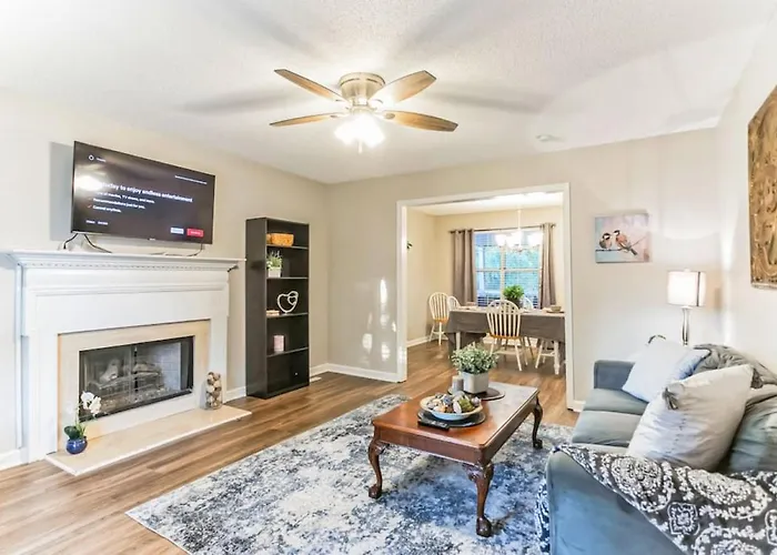 Cartersville Family Home With Spacious Backyard is situated approximately a 25-minute walk from zion hill baptist in Cartersville and offers accommodation with a fully equipped kitchen. The building consists of 3 bedrooms and 2 bathrooms.